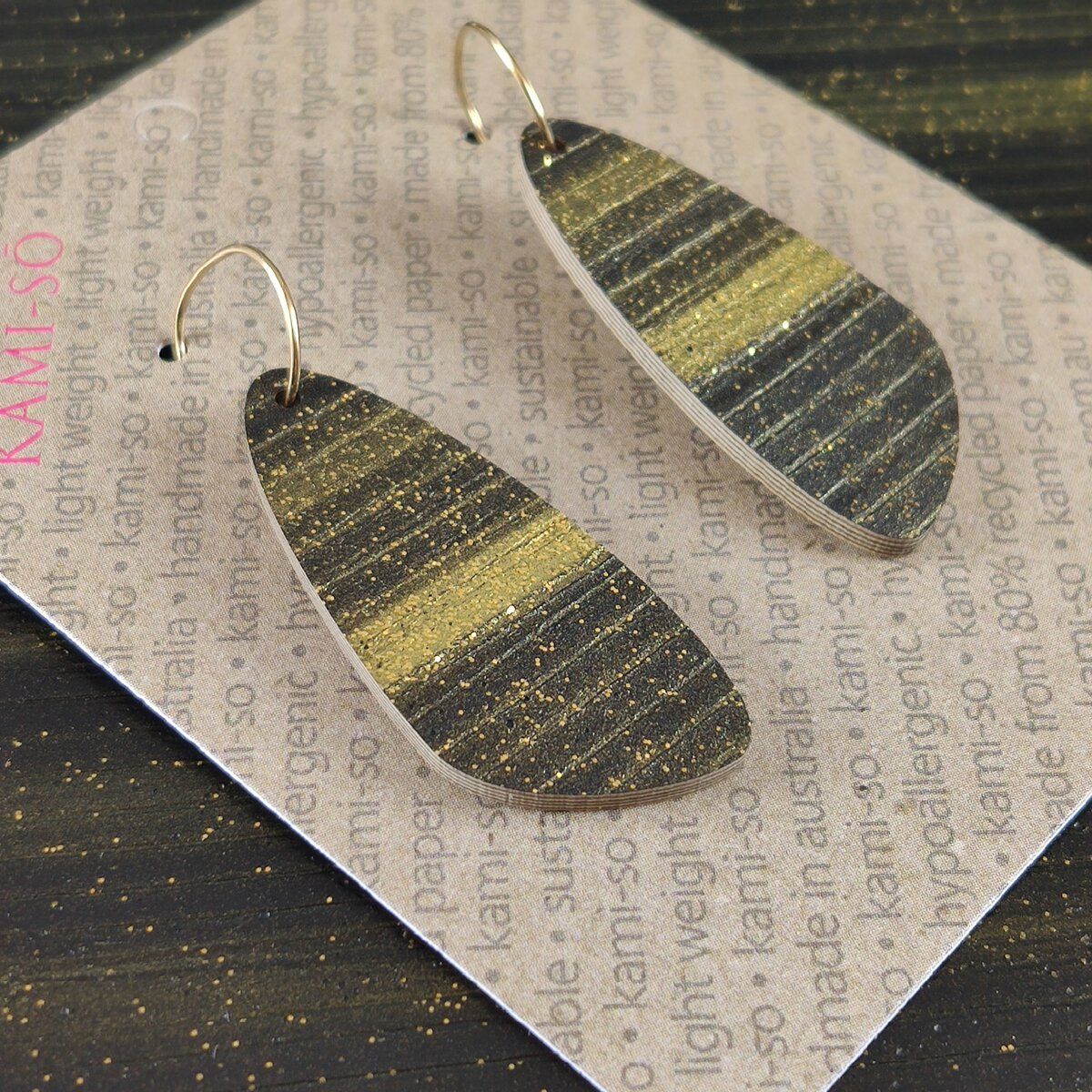 Oval Recycled Paper Earrings - Black & Gold Stripe