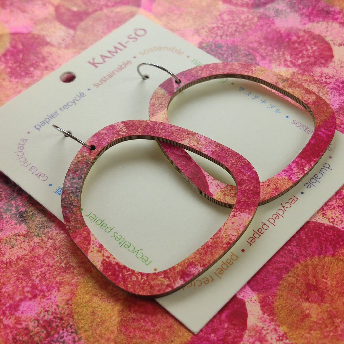 Square Recycled Paper Earrings - Magenta, Pink & Gold