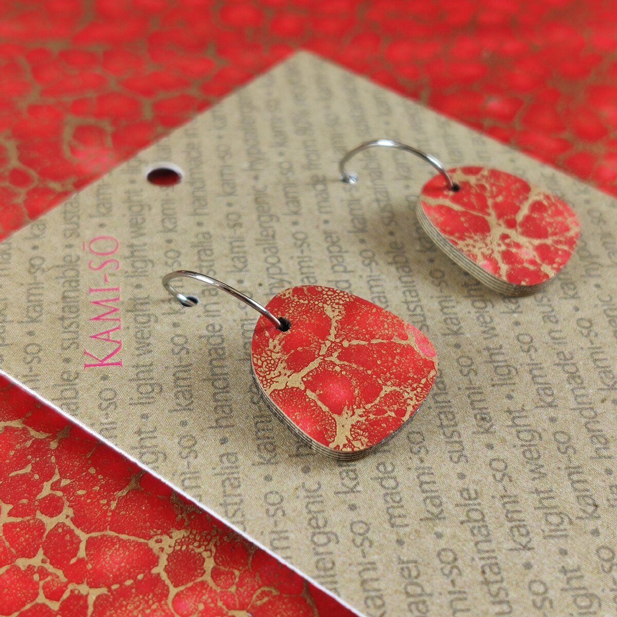 Square Recycled Paper Earrings - Red & Gold Crackle